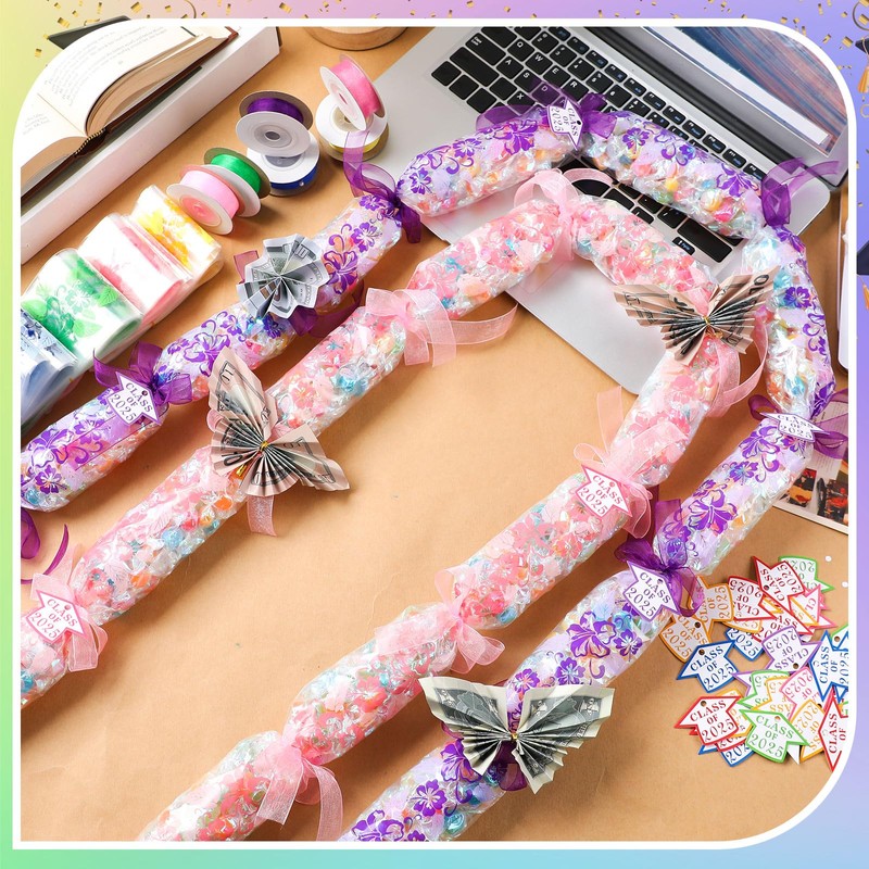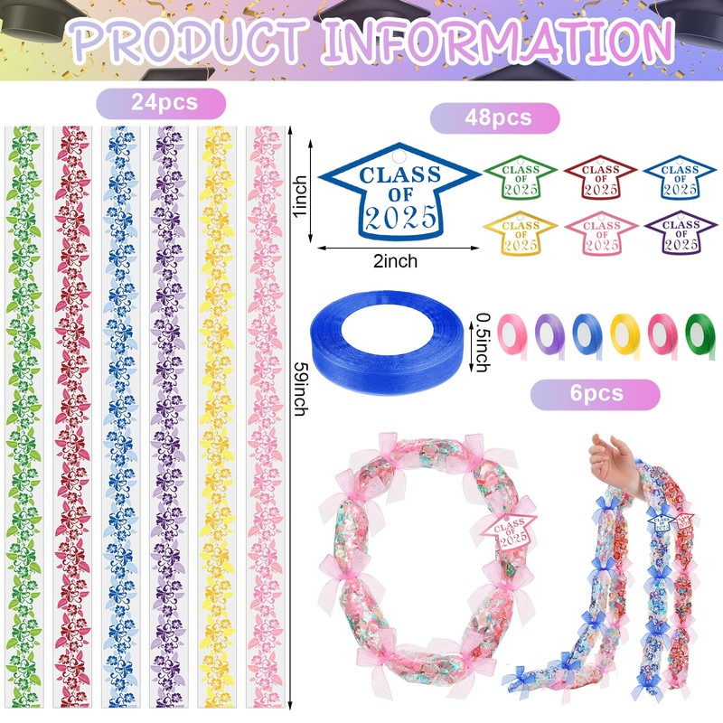 • Party Supplies: with our lei kit for graduation, you can easily make Hawaiian style candy leis that are beautiful and can be applied as party decorations or gifts, and there are a total of 24 tubes and a roll of ribbon, enough for graduation parties and other occasions with many people
