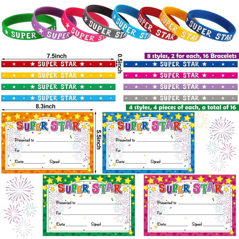 - Suitable Size: the size of student awards is 14 x 21 cm/ 5.5 x 8.3 inch, and the circumference of the super star wristbands is 19 cm/ 7.5 inches, which is suitable for children's daily wear and easy to take off