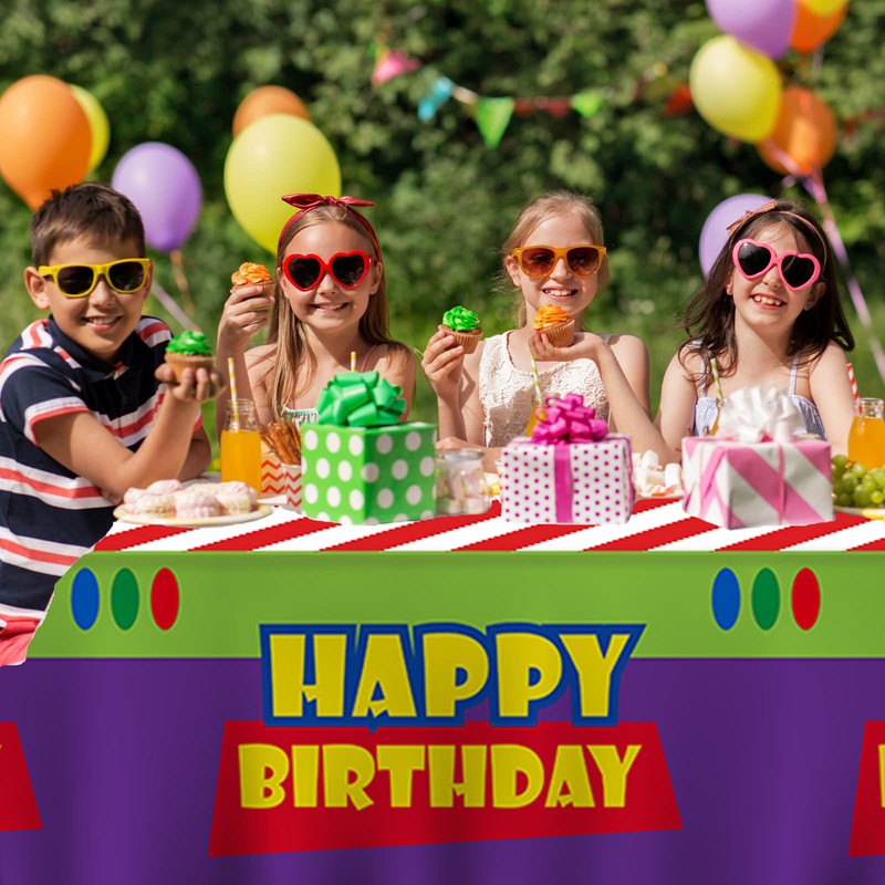 Junliang Happy Birthday Tablecloths Toy Inspired Story Party Theme Red Stripe Table Covers Decorations for Kids Boy Baby Shower Birthday Party Dining Room Holiday Party 53"x98"