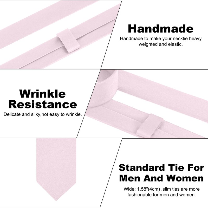 JUNMEISI Men's Ties Solid Pure Color 1.58" (4CM) Plain Slim Necktie Skinny Light Pink Ties For Men