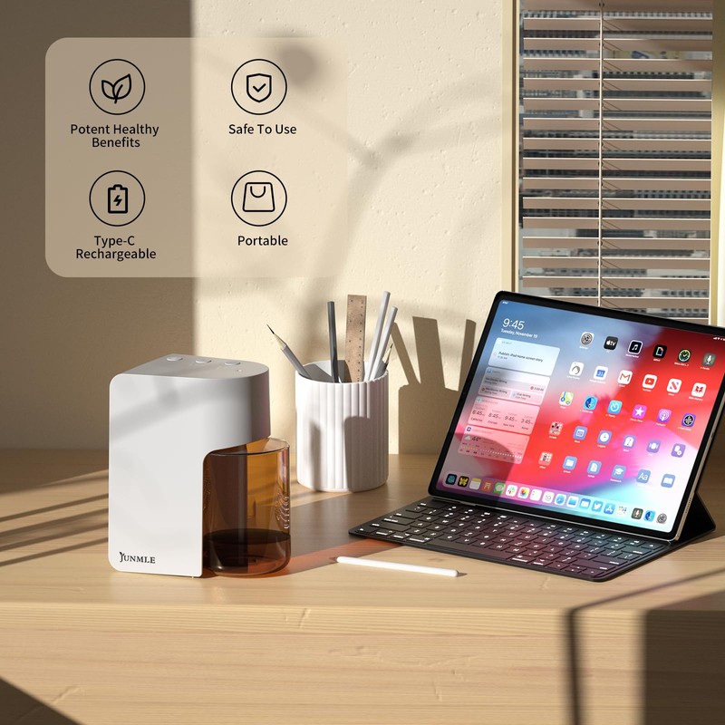 - Sin agua: el difusor de aceite esencial sin agua JUNMLE maneja la difusión de aceite esencial puro sin diluir directamente desde una botella de 200 ml sin necesidad de agua. El difusor recargable y portátil es perfecto para aplicaciones de área pequeña.