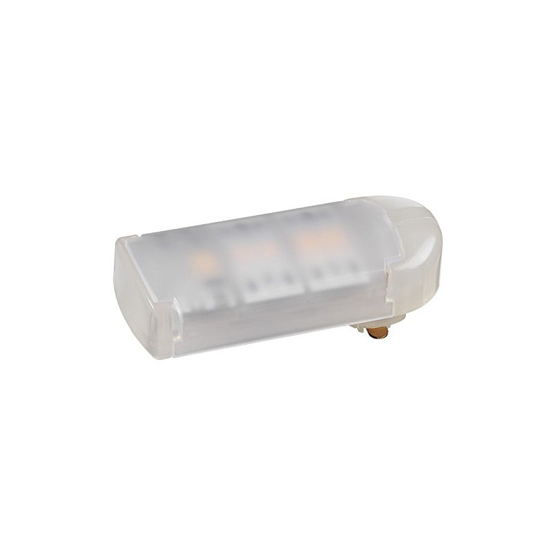Juno Lighting WarmDim LED Linear lighting module includes 1.1 Watts 2700 K color temperature with brightness of 43 lumens to illuminate wider area. Module is secured in a natural finish polycarbonate housing to withstand high temperature. It contains unique combination of LEDs and electronic intelligence for gradually shifting color temperature from 2700 K to warmer temperature of 1800 K. It is compatible with standard Trac 12 and Trac 12/25 remote mount magnetic transformer and TL601E TL602E