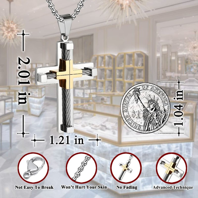 - ✅RELATED DETAILS✅CROSS SIZE: large size is 2.48''*1.58''; Medium size is 2.01''*1.21'' (Two sizes are designed for the cross, you can freely choose the size you want); CHAIN: 20'' to 28'' Rolo Chain and Byzantine Chain; NET WEIGHT: 1.08oz and 0.77oz.High-quality stainless steel as the material, which has the advantages of obvious corrosion resistance, not easy to fade, etc., giving you a better product experience.