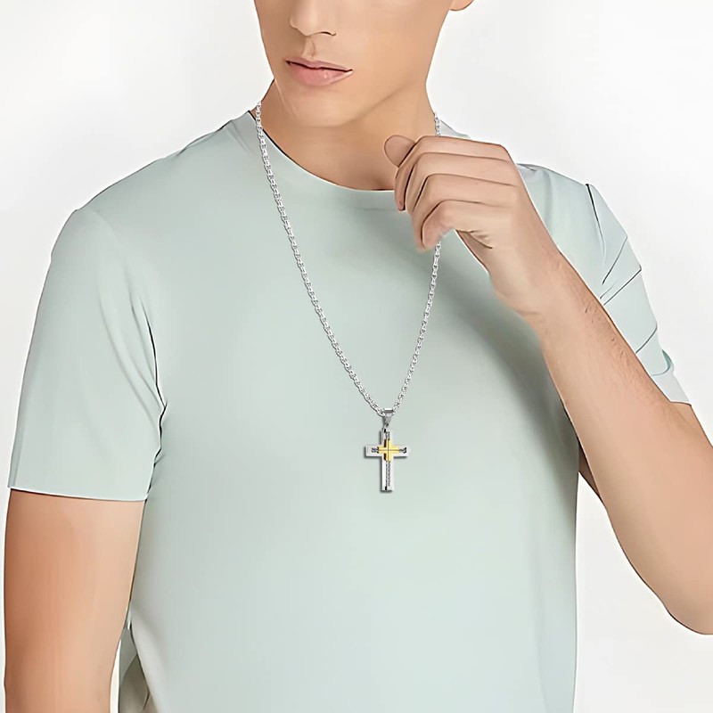 - ✅UNIQUE CROSS✅Handsome and domineering cross necklace for men. From the design point of view, two sizes are suitable for men and boys, and two chains with different chain lengths give you the best choice; From the perspective of workmanship, its workmanship is incomparable, it takes countless times more thought than others, and its quality is the best. There is no doubt that it is one of the best cross necklaces for men.
