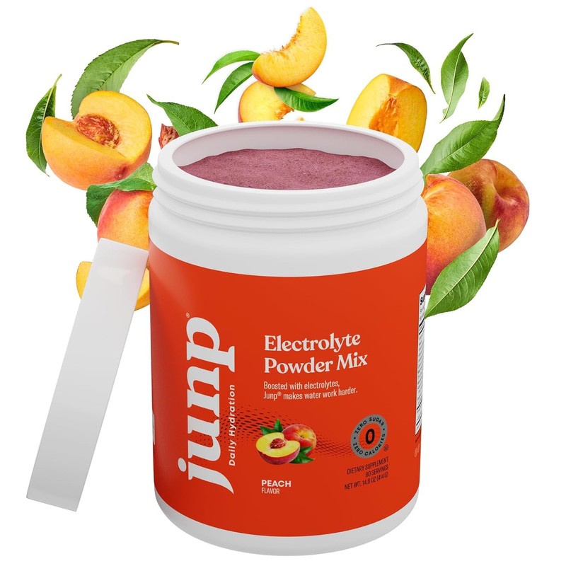 JUNP Electrolytes Powder No Sugar No Carbs – Orchard Fresh Juicy Peach Drink Mix - Potassium & Salt Electrolyte Hydration Powder Zero Calorie Sugar Free Electrolyte Powder, Keto Friendly, 180 Servings