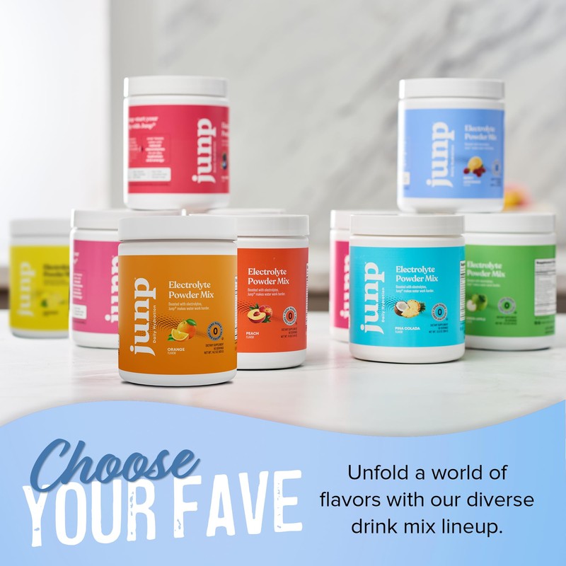 - JUNP: MAKE WATER WORK HARDER - Junp powder electrolyte mix boosts water with natural salty electrolytes and refreshing fruit-infused flavor to keep you hydrated and energized all day, replenishing the essential vitamins and minerals your body loses through sweat.