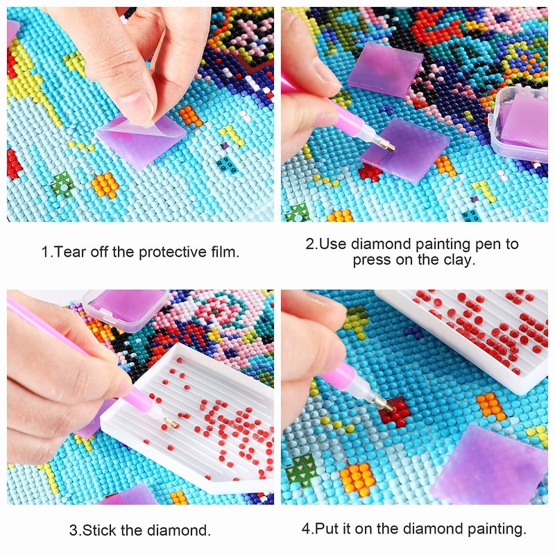 - Operate with ease: just tear off the transparent film of wax clay, use your diamond painting pen to press on the clay, stick diamond beads to your diamond painting picture where you need, and you can take it out when you need it, and other wax tools can still be stored well