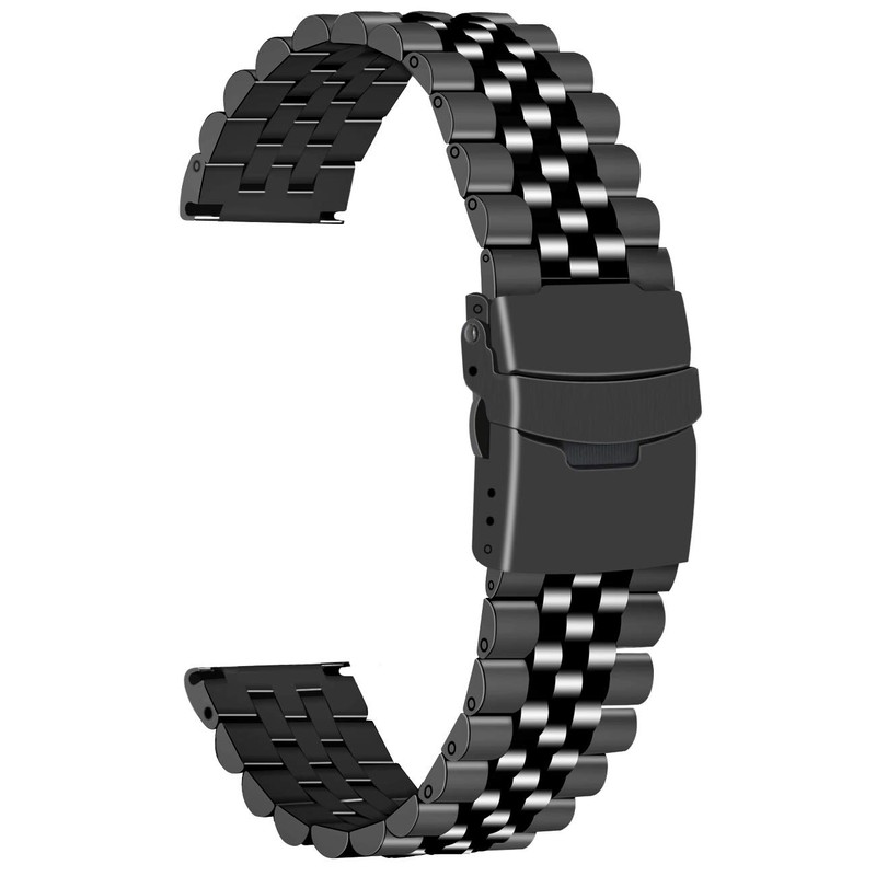 Juntan Watch Strap 20 mm 22 mm 24 mm for Men and Women 3D Five Rows Replacement Strap Metal Clasp Black/Silver, black, Classic bracelet
