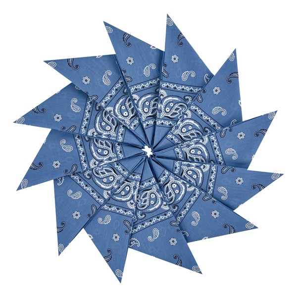 Junvena Bandanas de algodón 12 paquetes de 22 x 22 pulgadas de doble cara impresa unisex, Azul (Chambray), 22 Pulgadas