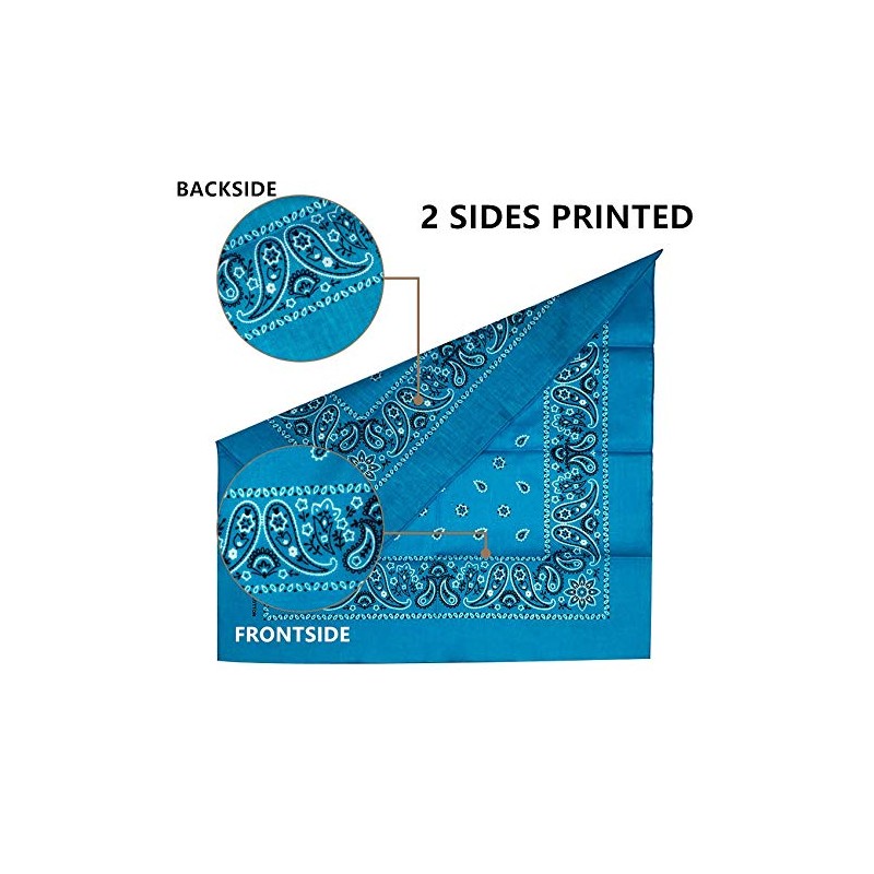 Junvena Cotton Bandanas 12 packs 22"X 22" Double Sides Printed Unisex Kerchief (Turquoise)