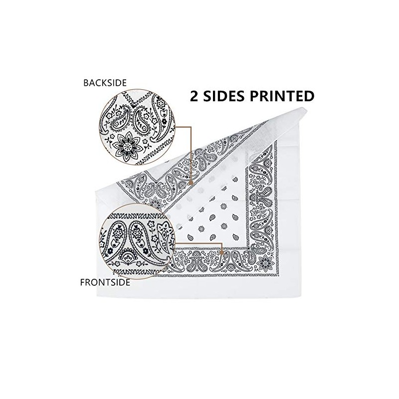 Junvena Cotton Bandanas 12 packs 22"X 22" Double Sides Printed Unisex Kerchief (White)