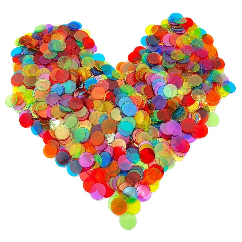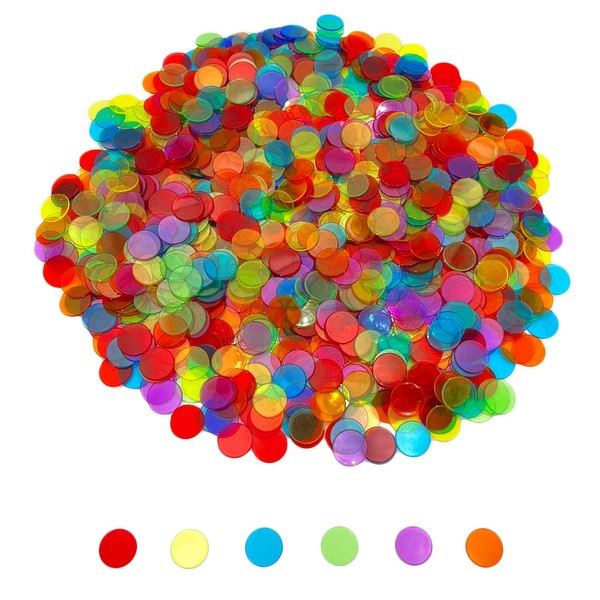 JUNWRROW 1000 Pieces 3/4 inch Transparent 6 Color Bingo Counting Chips with Bag - for Large Group Games, Game Night & Educational Activities