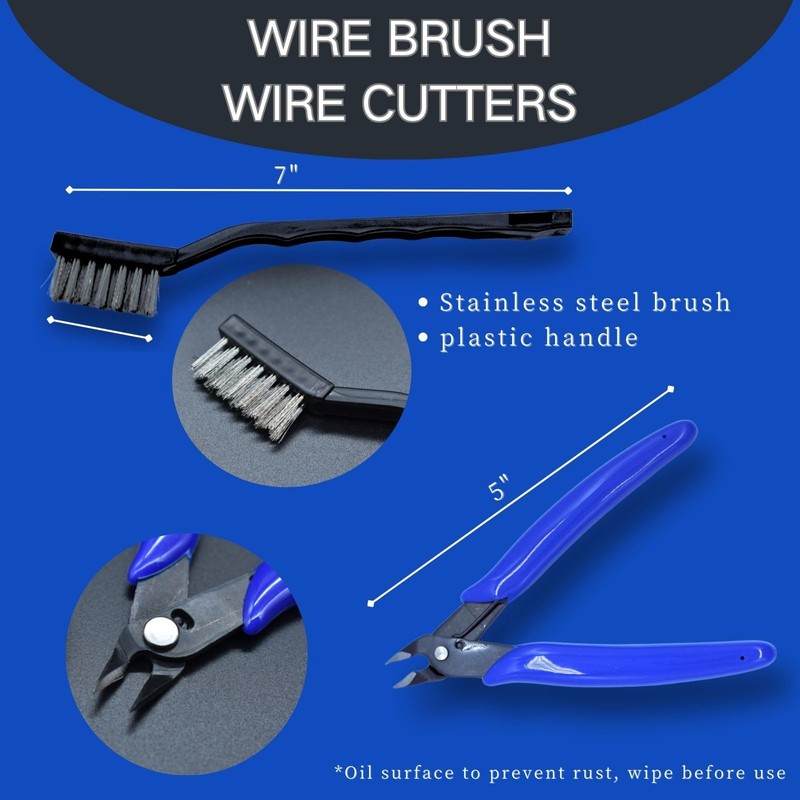 - [What You Get]: Include side pliers (wire flush cutters) x 1, stainless steel putty knife x 1, cleaning needles x 10, wire brush x 2, tweezers x 2, scraper knife x 1, graining burnishing tools x 5, plastic scraper tool x 1, nylon zipper storage bag x 1