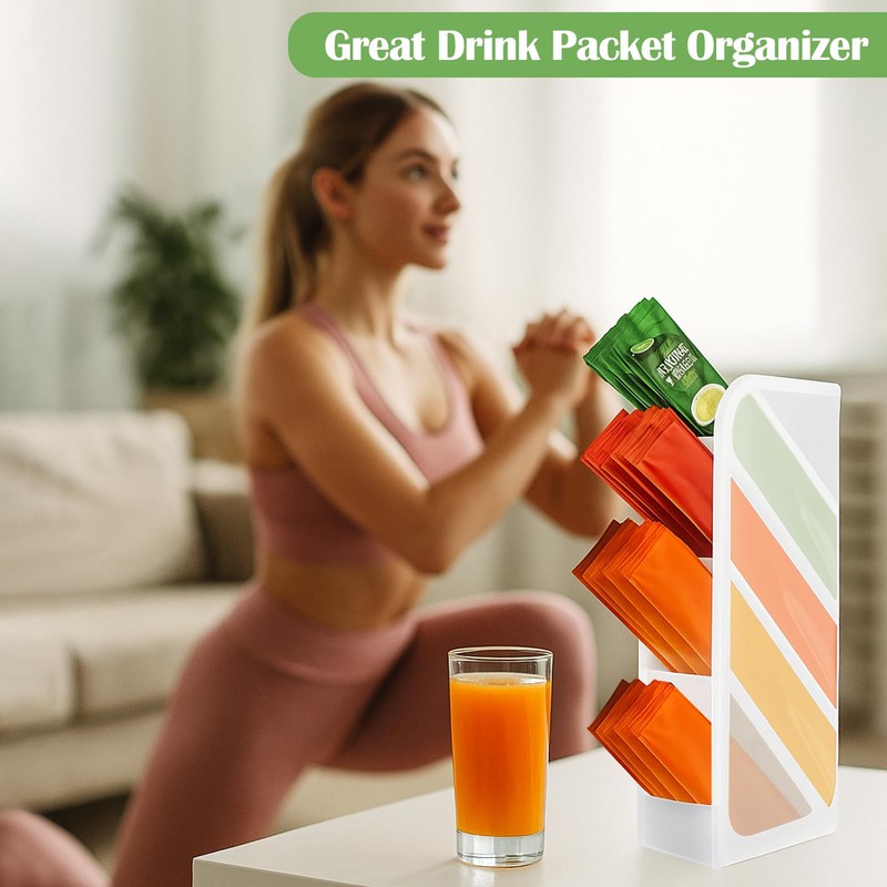 - Quick and Easy Access: The angled compartments ensure every packet is clearly visible and within easy reach. Whether you’re rushing in the morning or relaxing in the evening, your drink packets are always at your fingertips