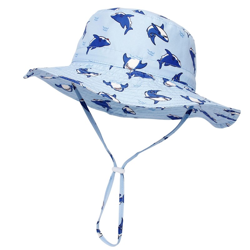 Jupsk Baby Sun Hat Toddler Summer Bucket Hat Wide Brim Beach Cap with Adjustable Chin Strap UPF50 for Kids Child Boys Girls 2-5 Years (Sharks)