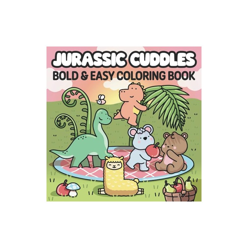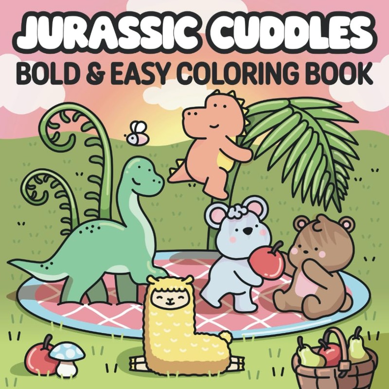 Jurassic Cuddles: Bold & Easy Coloring Book for Adults and Teens Featuring Adventures with Cute Friends and Dinosaurs