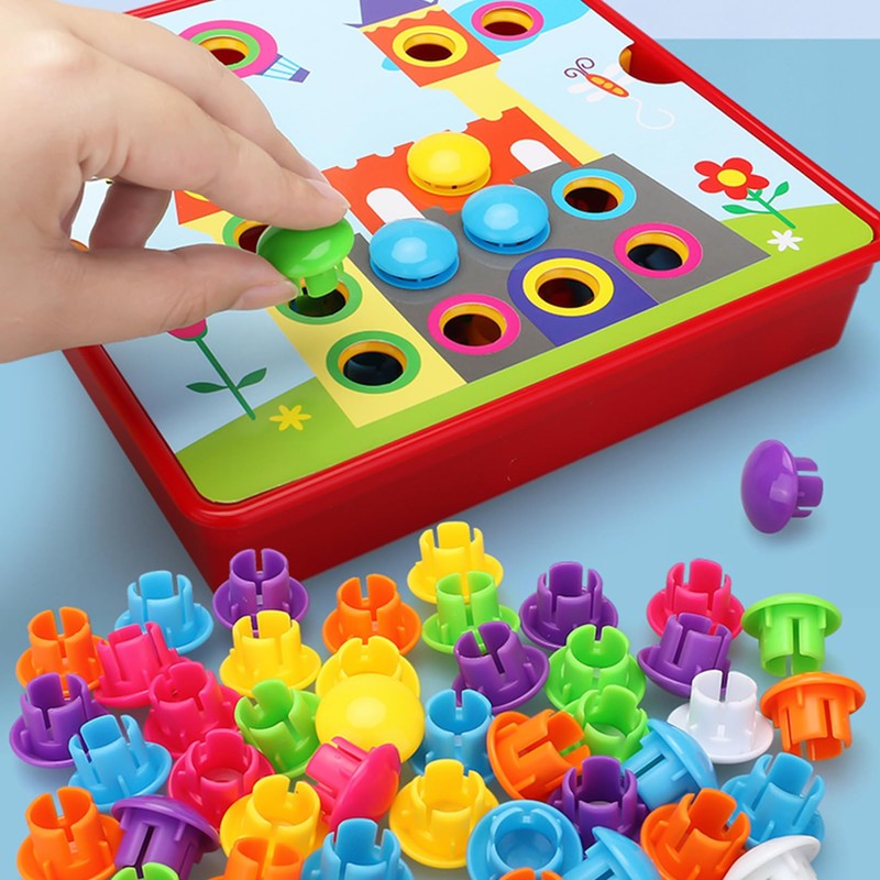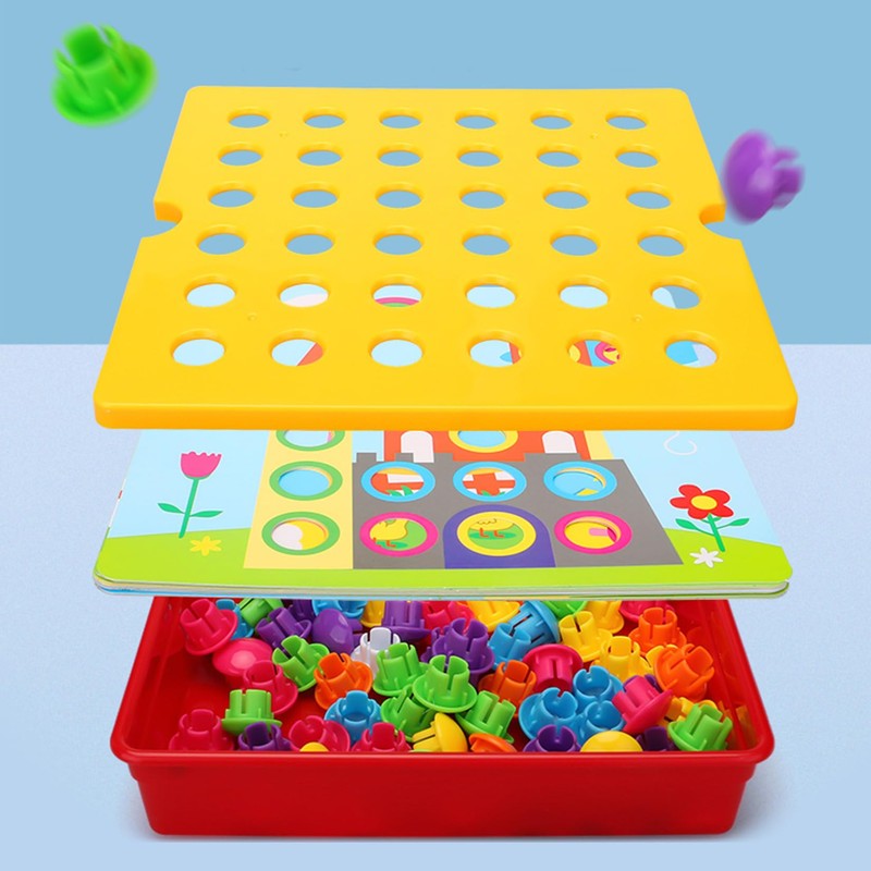 Mosaic plug-in game is round and smooth, does not hurt your hands; precise hole size, so that the mushroom nail and plate are firmly sewn, not easy to fall.