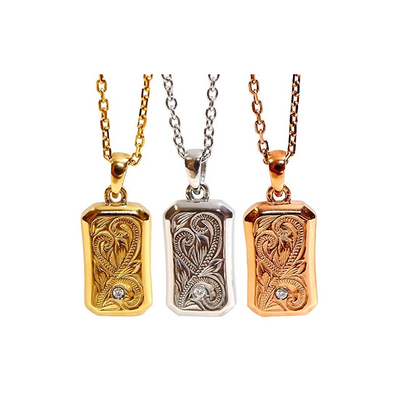 Jurice Hawaiian Jewelry Necklace Plate Scroll Wave Stone Cubic Zirconia Hypoallergenic Surgical Stainless Steel, Cubic Zirconia