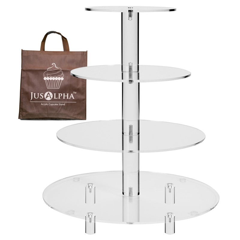 Jusalpha Large 4 Tier Cupcake Stand,Acrylic Round Cake Stand Dessert Tower Tea Party Serving Platter, Cupcake Tree Wedding Party Décor, Stand with Rod Feet (4RF)