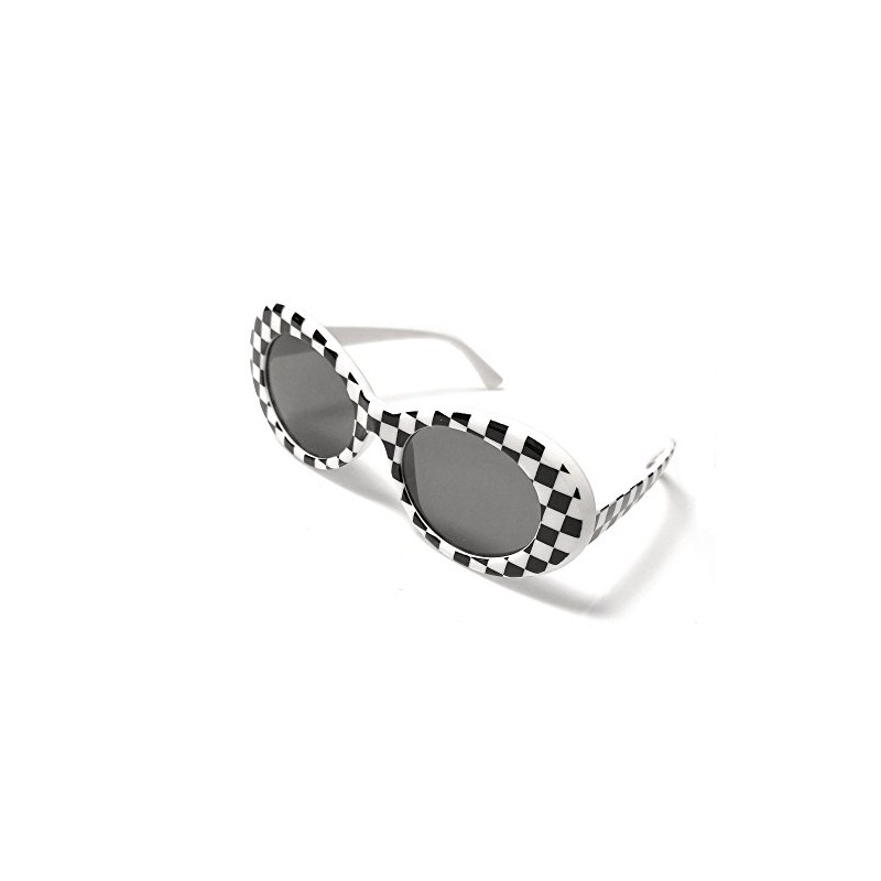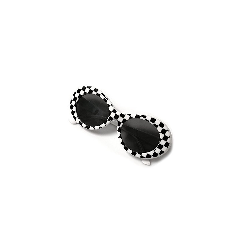 JUSLINK Bold Retro Oval Mod Thick Frame Sunglasses Round Lens Clout Oval Goggles (checkered)