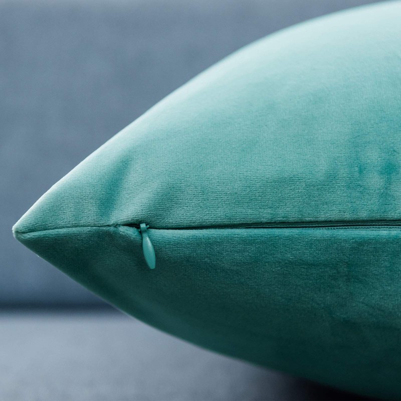 JUSPURBET Teal Green Velvet Throw Pillow Covers 55x55 CM Set of 2 for Living Room Couch Sofa Bedroom Decorative Square Solid Soft Cushion Cases with Invisible Zipper