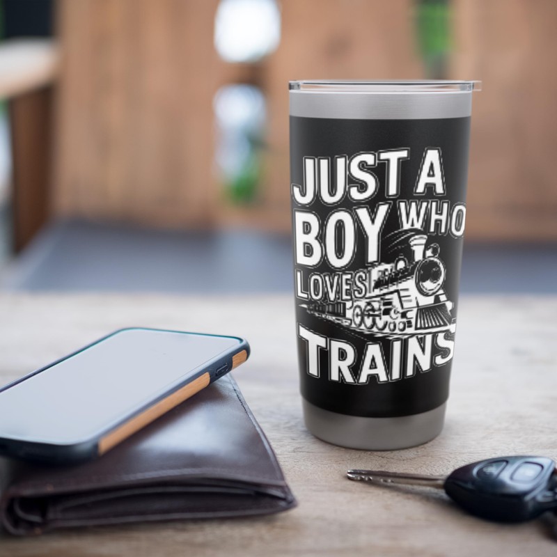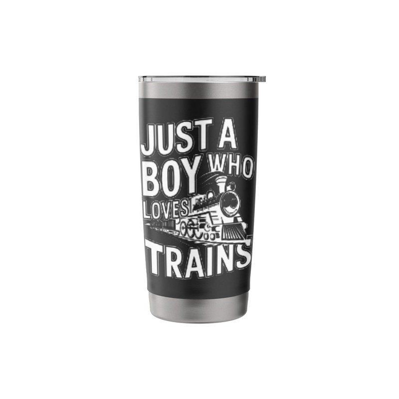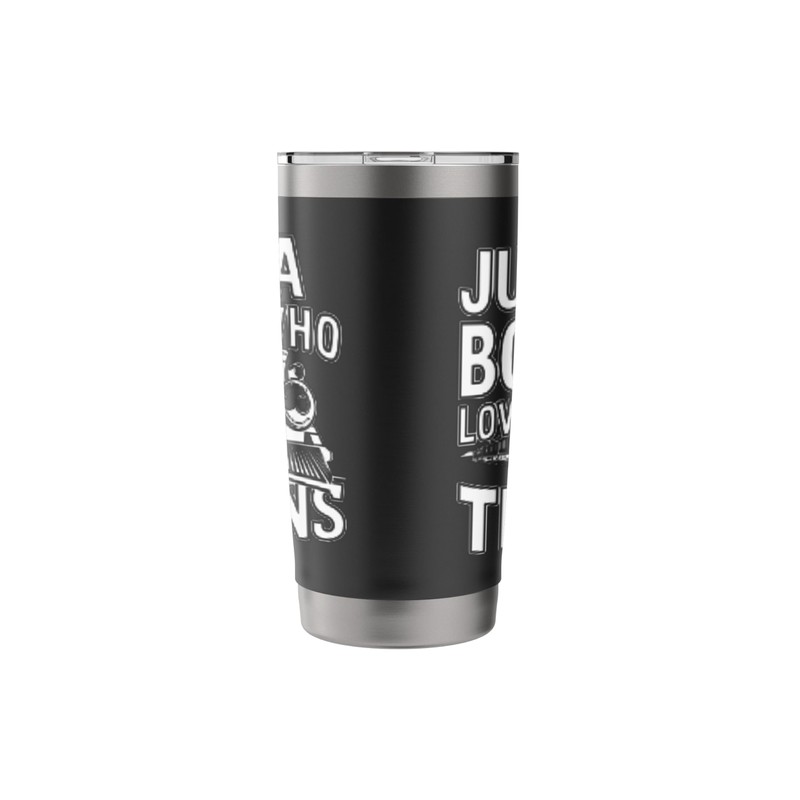 Just a Boy Who Loves Trains Funny Retro Steam Engine Stainless Steel Insulated Tumbler