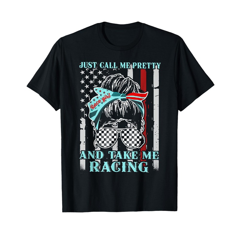 Just Call Me Pretty And Take Me Racing Race Girl Flag T-Shirt