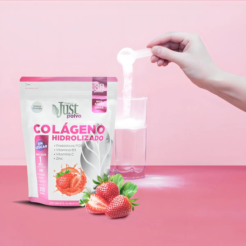 Just Colágeno Hidrolizado Collagen 6000 En Polvo Sabor Fresa