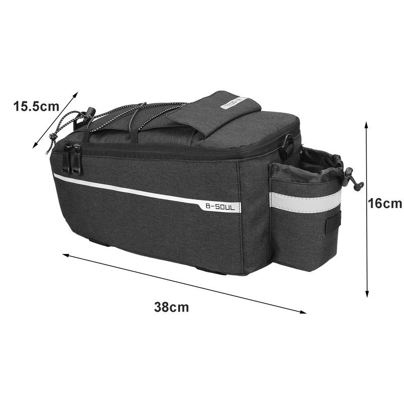- đăWaterproof Material & Insulated Liningă The bike rear rack bag is made of water-resistant fabric with protective padding that provide a cushion to reduce shock when riding on road. Insulated lining keeps your beverage and food cold or warm for hours.