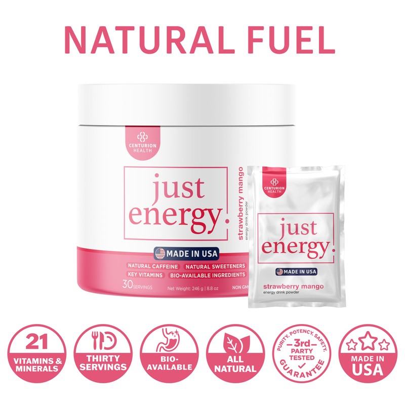 - QUALITY YOU CAN TRUST: Made in the USA with non-GMO ingredients and natural sweeteners, Just Energy ensures clean energy you can feel good about. Order today to fuel your active lifestyle!