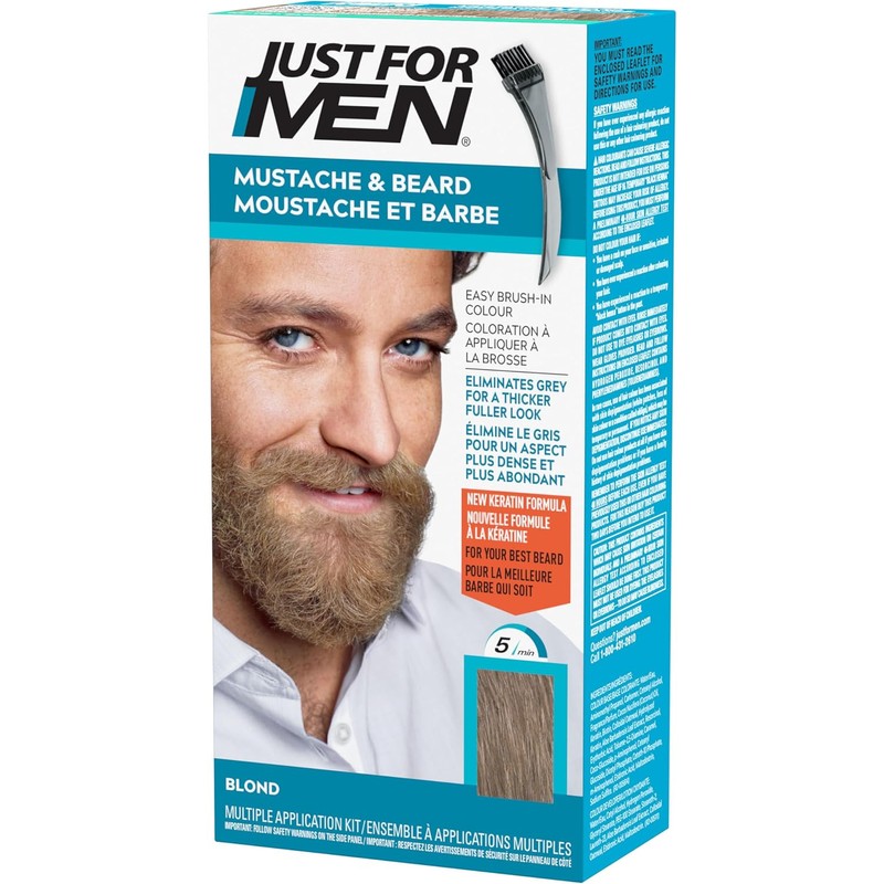 Just For Men Mustache & Beard, Beard Dye for Men with Brush Included for Easy Application, With Biotin Aloe and Coconut Oil for Healthy Facial Hair, Blond, M-10 (1 Count), Packaging May Vary