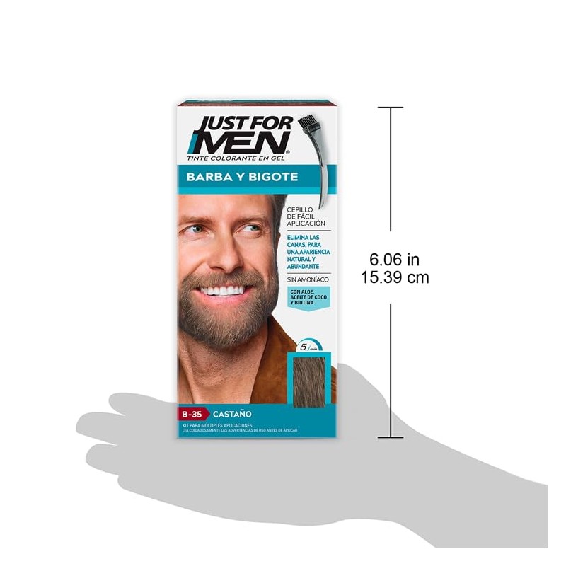 Just For Men Tinte Colorante en Gel Para Barba y Bigote,Castaño B35, Sin Amoníaco,Con Cepillo De Fácil Aplicación, 66ml