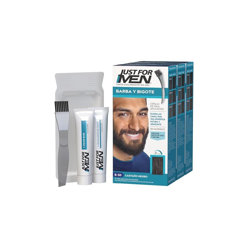 Just For Men Tinte En Gel Para Barba Y Bigote Castaño Negro B-50 Paquete de 3