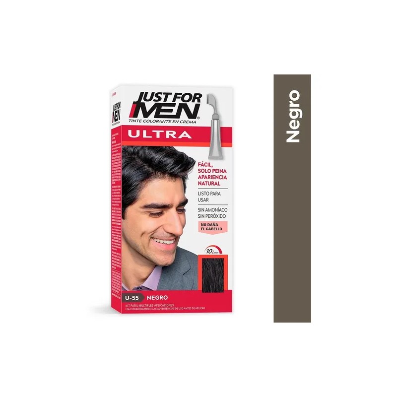 La fórmula de Just For Men Ultra está diseñada para recuperar tu color natural, dando como resultado un tono uniforme y sin manchas. Es fácil de aplicar y no requiere de complicados procesos, por lo que podrás lograr el resultado que deseas desde la comodidad de tu hogar.