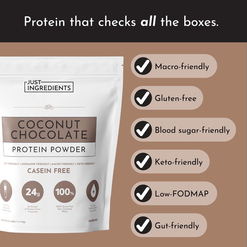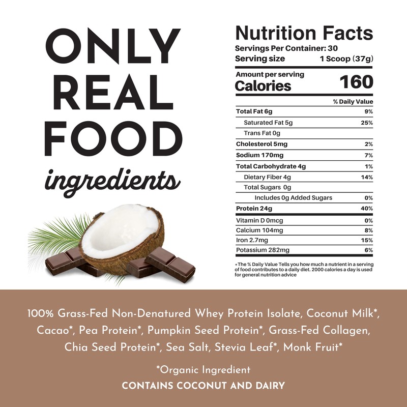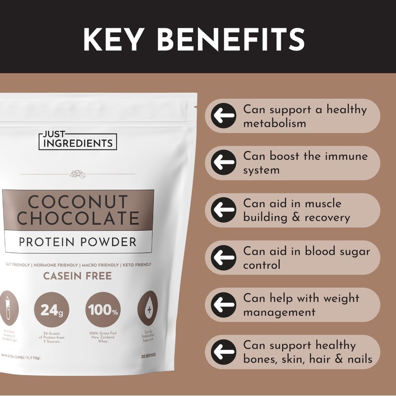 JUST INGREDIENTS Coconut Chocolate Protein Powder – 30-Serving Blend with 100% Grass-Fed Whey & Organic Plant Proteins – Creamy Coconut Cocoa Flavor – Supports Muscle Recovery, Energy*