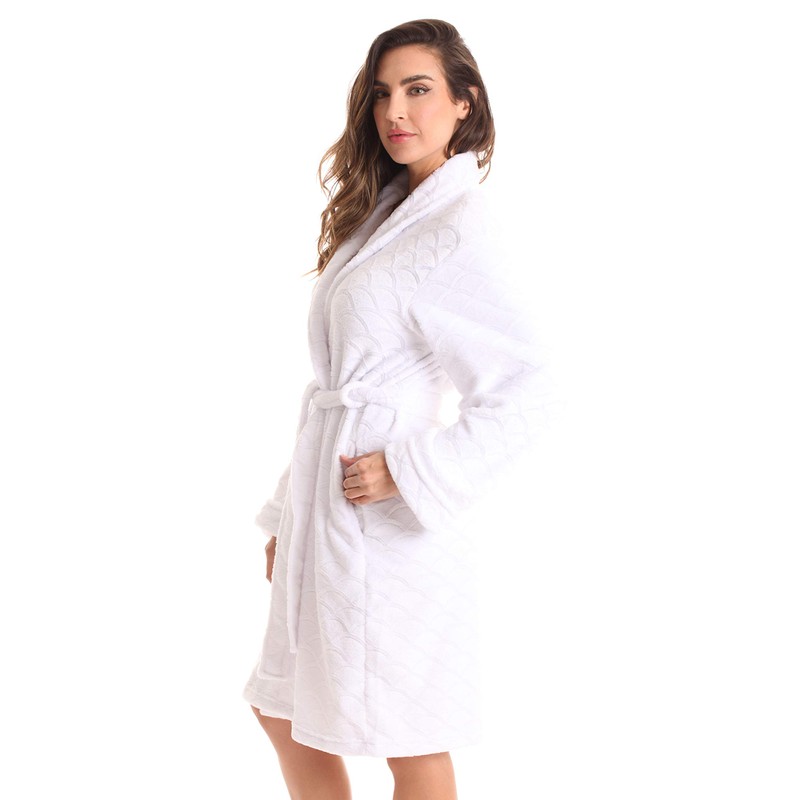 - SLIP INTO PRETTINESS: We’ve complemented the cute scalloped pattern and classic look of the velour lounge robe with calming colors that adds a beautifully classic touch to loungewear. Whether you’re reading a book or enjoying some good T.V, you’ll look just as amazing as you feel.