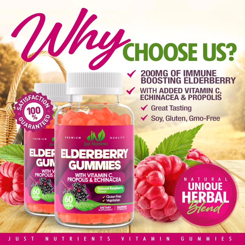 - Delicioso sabor a frambuesa - Toda la familia disfrutará nuestras gomitas de saúco con sabor a frambuesa delicioso.