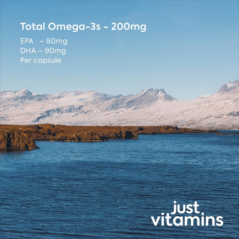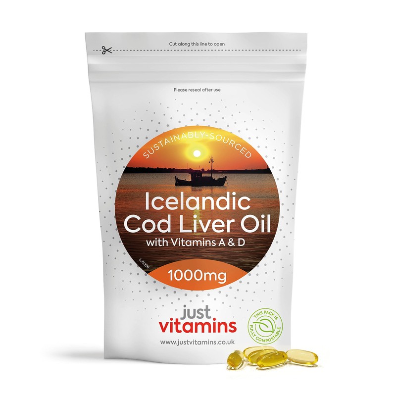 Just Vitamins Just Vitamins - Icelandic Cod Liver Oil 1000mg x90 Capsules - High Strength Omega 3 with Vitamins A & D, Supports Heart, Brain & Eye Health - UK Made Fish Oil Supplements