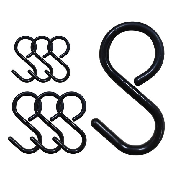 JUSTBOKU S-Shaped Hooks, No Rust, Anti-Shedding, S-Shaped Hook, S Hook, S Hook, For Bath, Kitchen, Fixed, 2.4 + 3.5 inches (6 + 9 cm) (Black, Small, Set of 3, Black, Large, 3-Piece Set)
