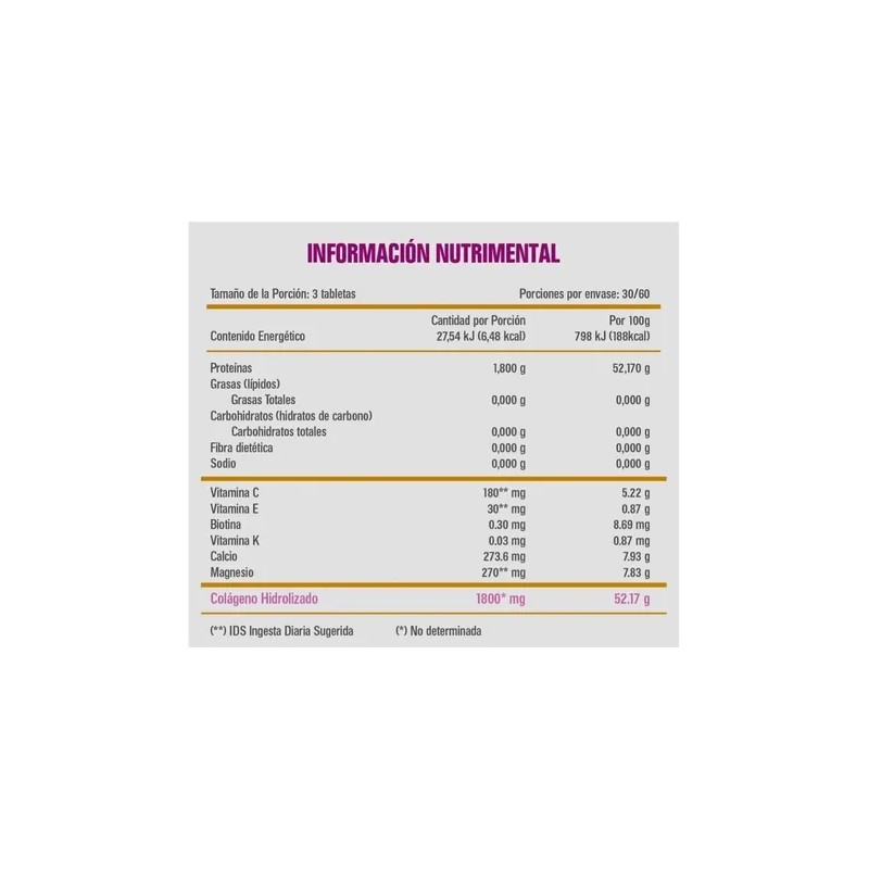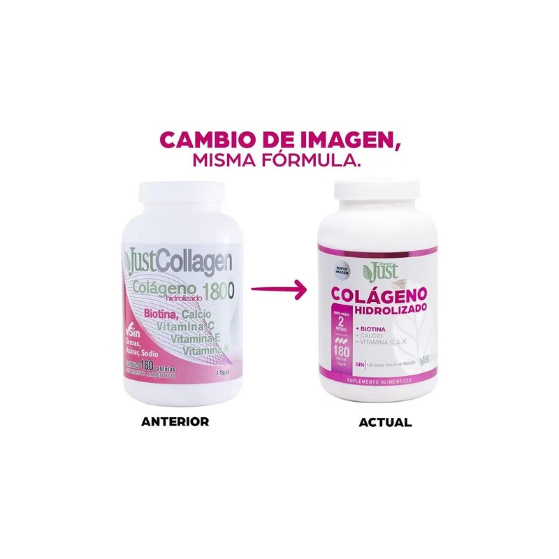 Justcollagen Colageno Hidrolizado 1800 180 Tabletas C E K Sabor Justcollagen