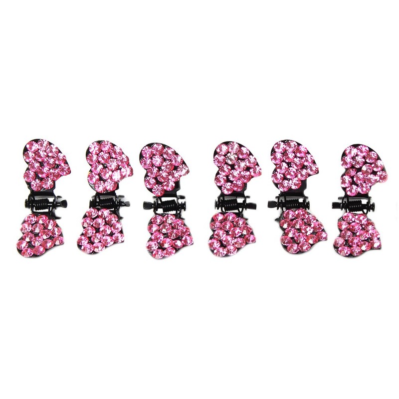 JUSTFOX - 6 x Mini Hair Clips in Heart Shape with Rhinestones (Pink), Metal