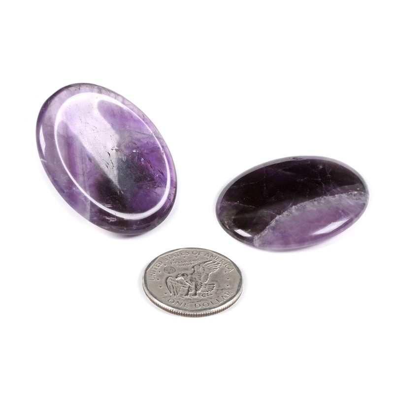 Justinstones 45mm Amethyst and Larvikite Healing Crystal Massage Rubbing Meditation Palm Worry Stone Reiki Chakra