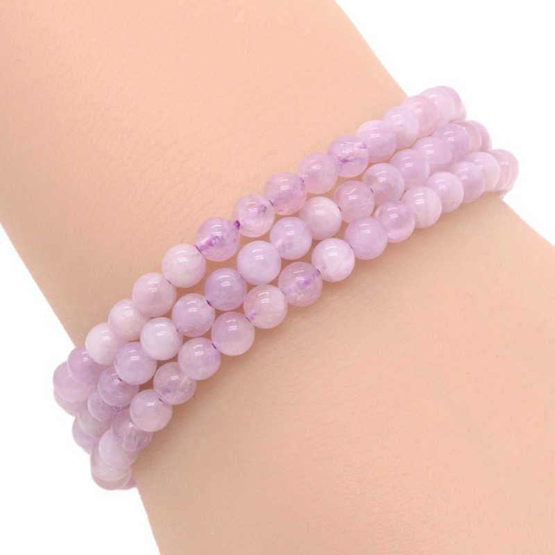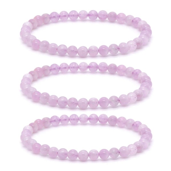 Justinstones Kunzite Natural Gemstone 3pcs 4mm Round Beads Stretch Bracelet 6.5 Inch Unisex