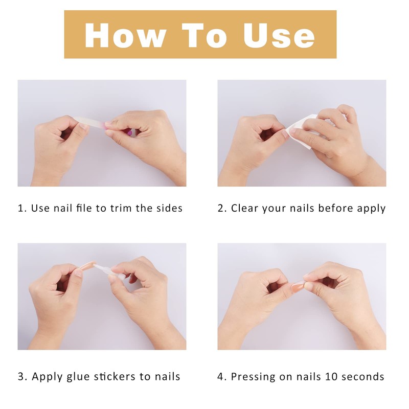 💅 STEP4: Put on the fake nails,Keep pressing for 10 seconds.