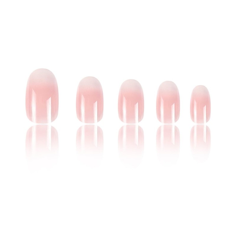 JUSTOTRY Pack of 24 Glossy Milky and Pink Almond Nails for Sticking, Medium Motif, French Press on Nails, Oval Artificial Nails, Pretty Fingernails, Fake Nails for Women