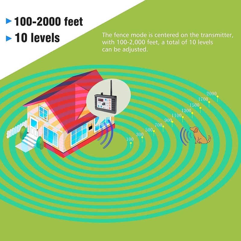 The fence mode is centered on the transmitter, with 100-2000 feet, a total of 10 levels can be adjusted.