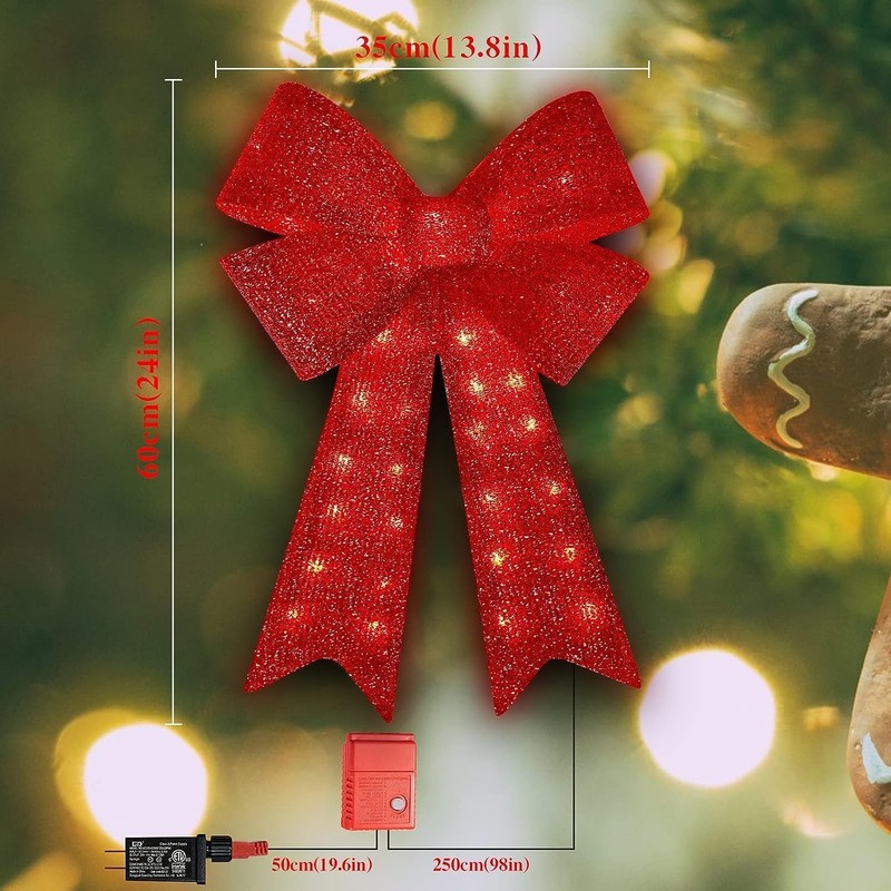 • Christmas Bow Decor: Our lighted red bow is a perfect decoration for Christmas, which can easily provide a festive touch to your Christmas decor. The bow measures 24" x 13.8", perfect size to home decorating. Large size for your different decorating needs.
