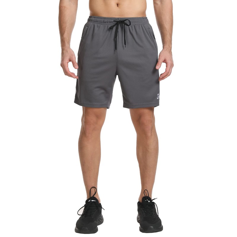 JustSun Men's Sports Shorts with Zip Quick Drying Lightweight Stretch Fabric, gray