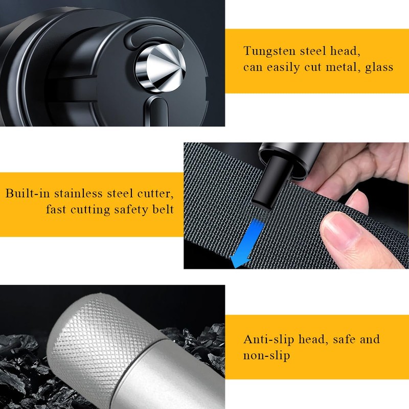 - 【How to Use】: To break a window, aim the glass breaker at the corner of the side window and apply appropriate pressure to break the glass. If you need to cut a seatbelt, aim the blade notch at the side of the seatbelt and push forward to cut the seatbelt.
