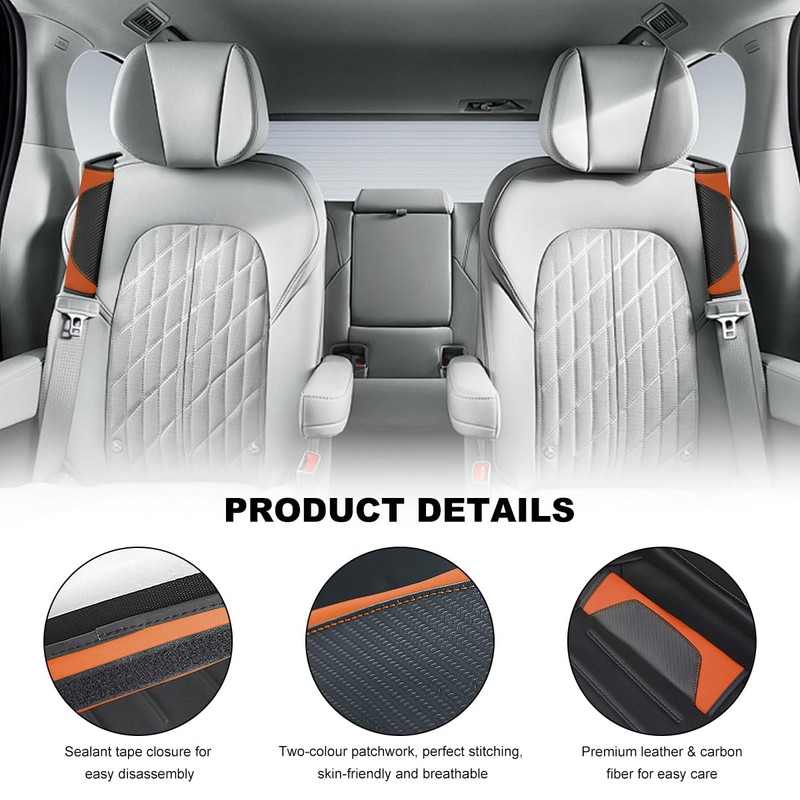 JUSTTOP 2 PCS Car Seat Belt Cover Pads, Carbon Fiber Soft Comfortable Seatbelt Protector Shoulder Strap, Safety Belt Pad Protect Neck and Shoulder from Rubbing, Car Accessories (Orange)